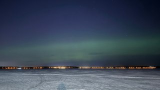 Северное сияние появилось над озером Сенеж — его видно на фоне магнитной бури