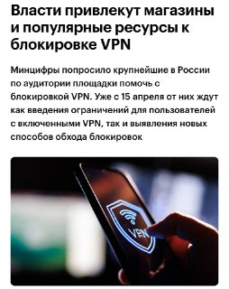 ⚡Война с VPN начнётся 15 апреля — Минцифры РФ попросило все крупные отечественные площадки банить пользователей с включённым VPN, пишут СМИ. Всем...